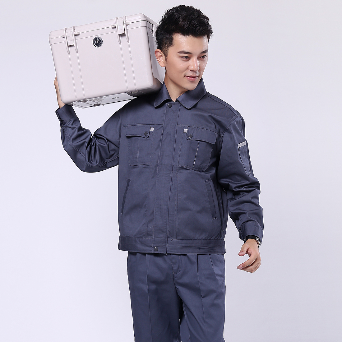 深灰配浅灰色工作服AC077