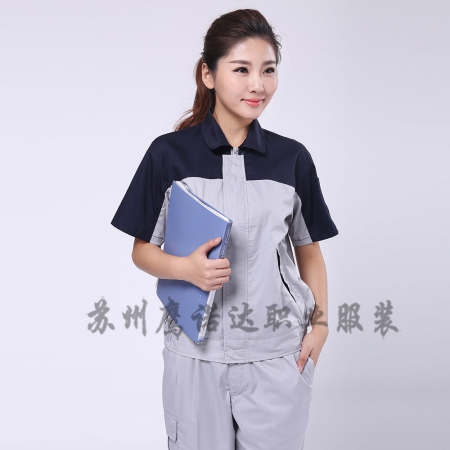 苏州鹰诺服装:浅灰拼绿色涤棉工作服AC121-CQ