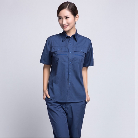 苏州鹰诺服装:深兰色短袖工作服AD04