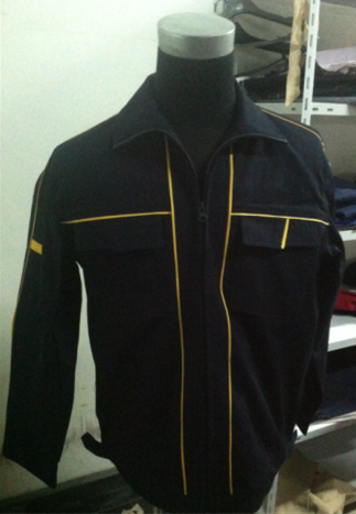 由于颜色纯米色略显单调,我们在设计时添加了黄色的元素,使得整个工作服也靓丽了,客户看到了也非常满意,要求我们赶快打样出来。