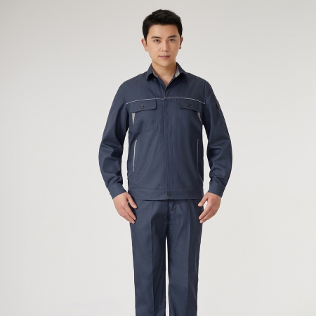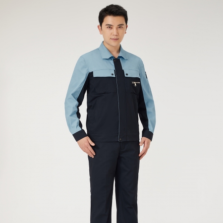 苏州鹰诺服装:深蓝拼浅灰色工作服AC2205-3