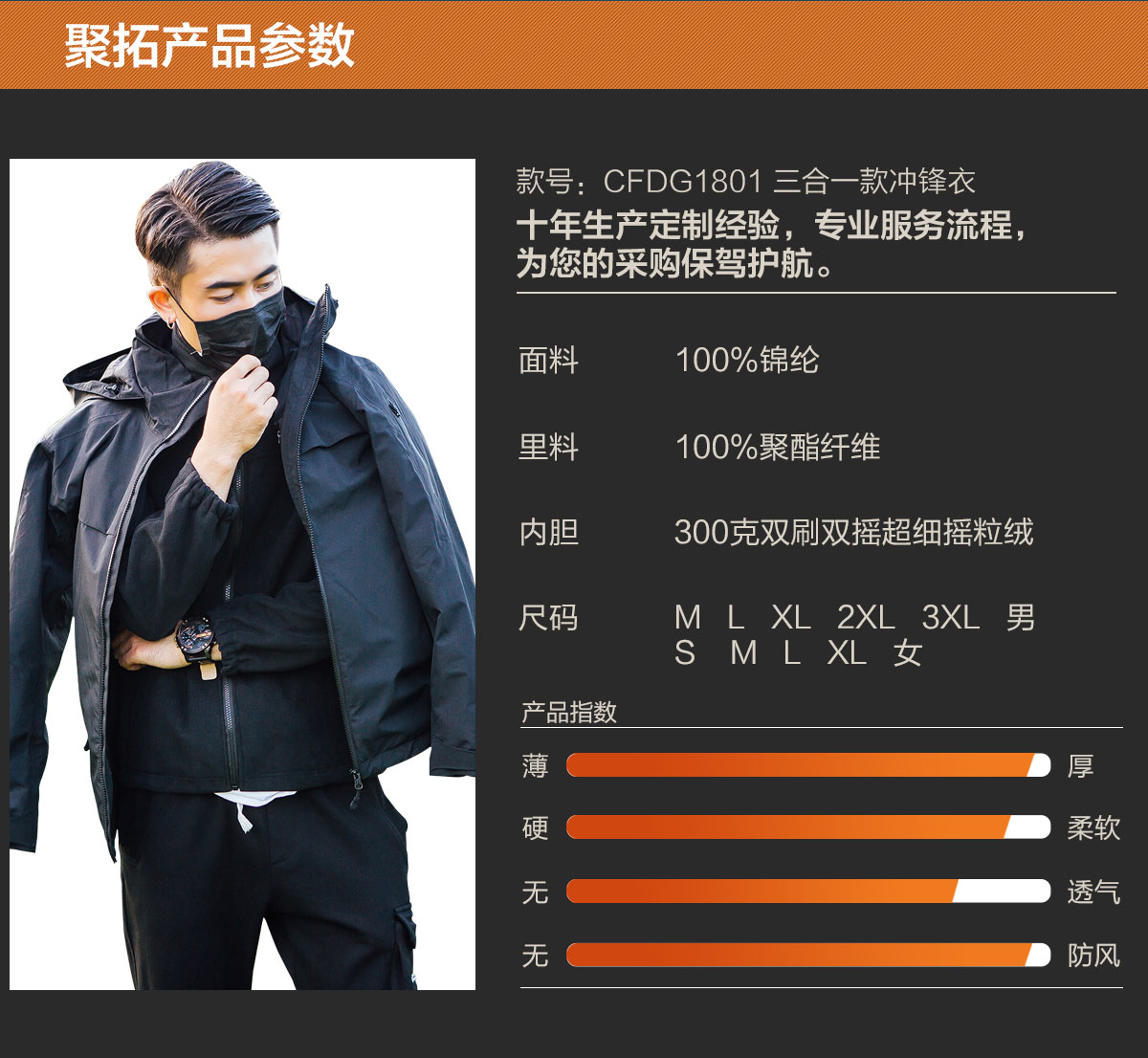 冲锋衣生产厂家的款式CFDG1801