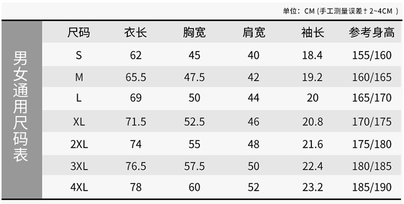 本产品共8个尺码:XS、S、M、L、XL、2XL、3XL、4XL 覆盖99.5%的人群。查看尺码表>