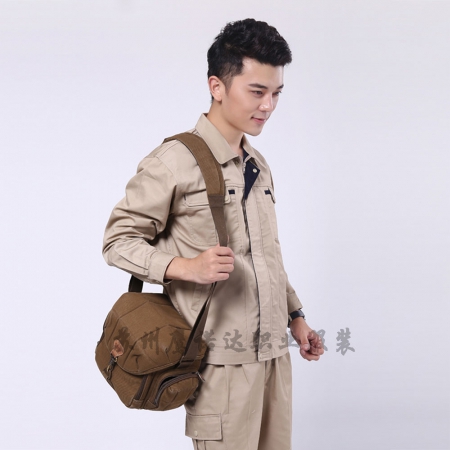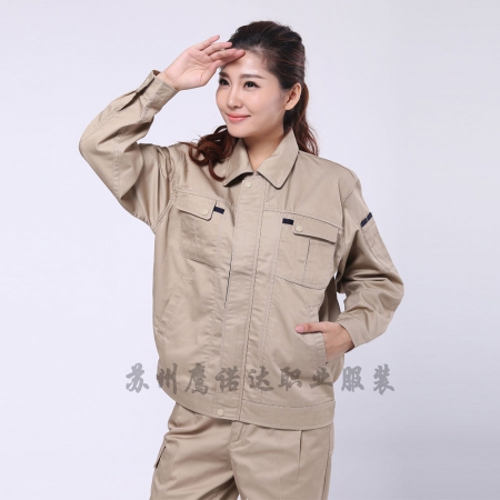 苏州鹰诺服装:藏青拼米色涤棉工服AC090