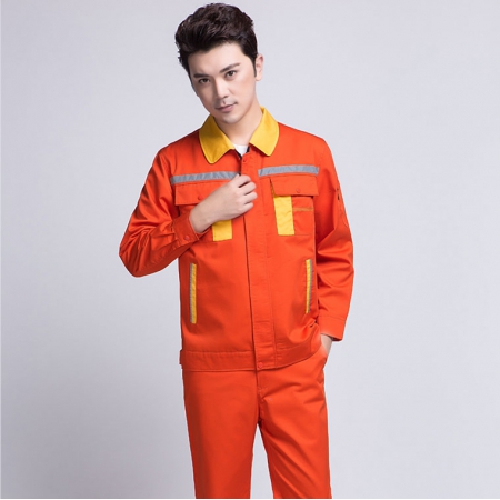 苏州鹰诺服装:深蓝配桔红短袖工作服AD069