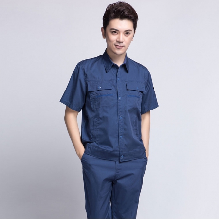 苏州鹰诺服装:湖蓝拼浅灰工作服AC20-2