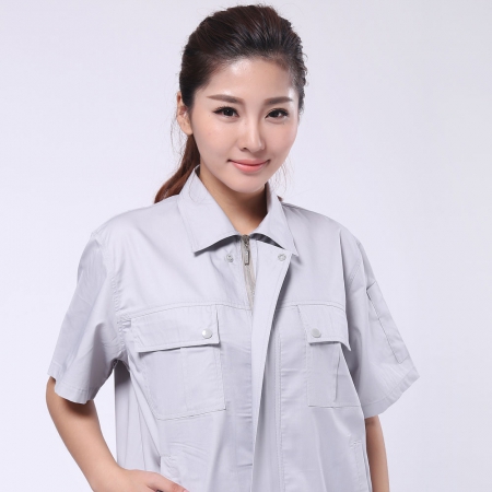 苏州鹰诺服装:浅灰拼绿色全棉工作服AC121-CQ