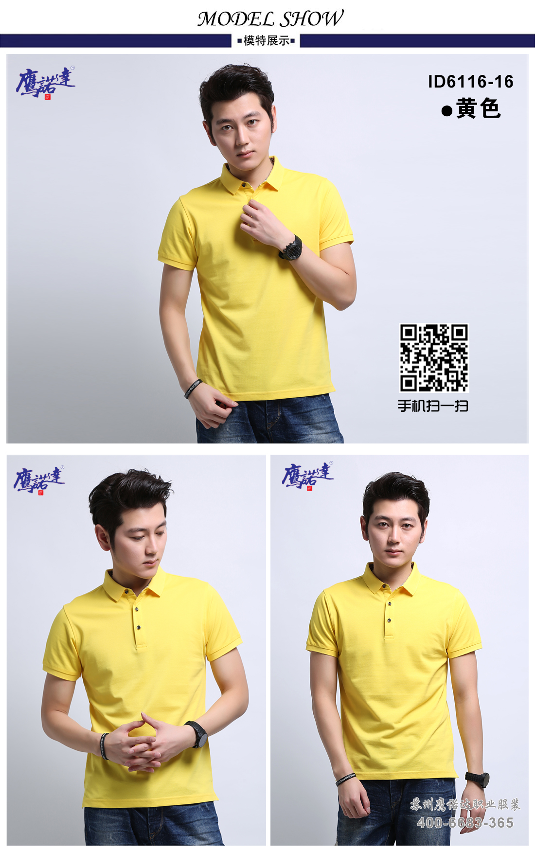 黄色CVC抗起球纤维T恤衫ID6116-16