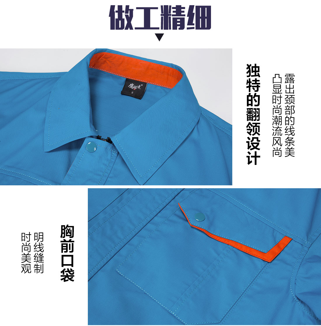蓝色拼橙色夏季工作服AD13-4