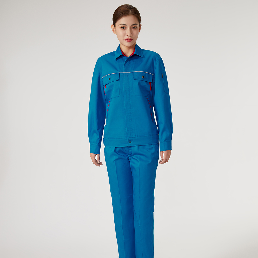 苏州鹰诺服装:湖蓝拼浅灰工作服AC20-2