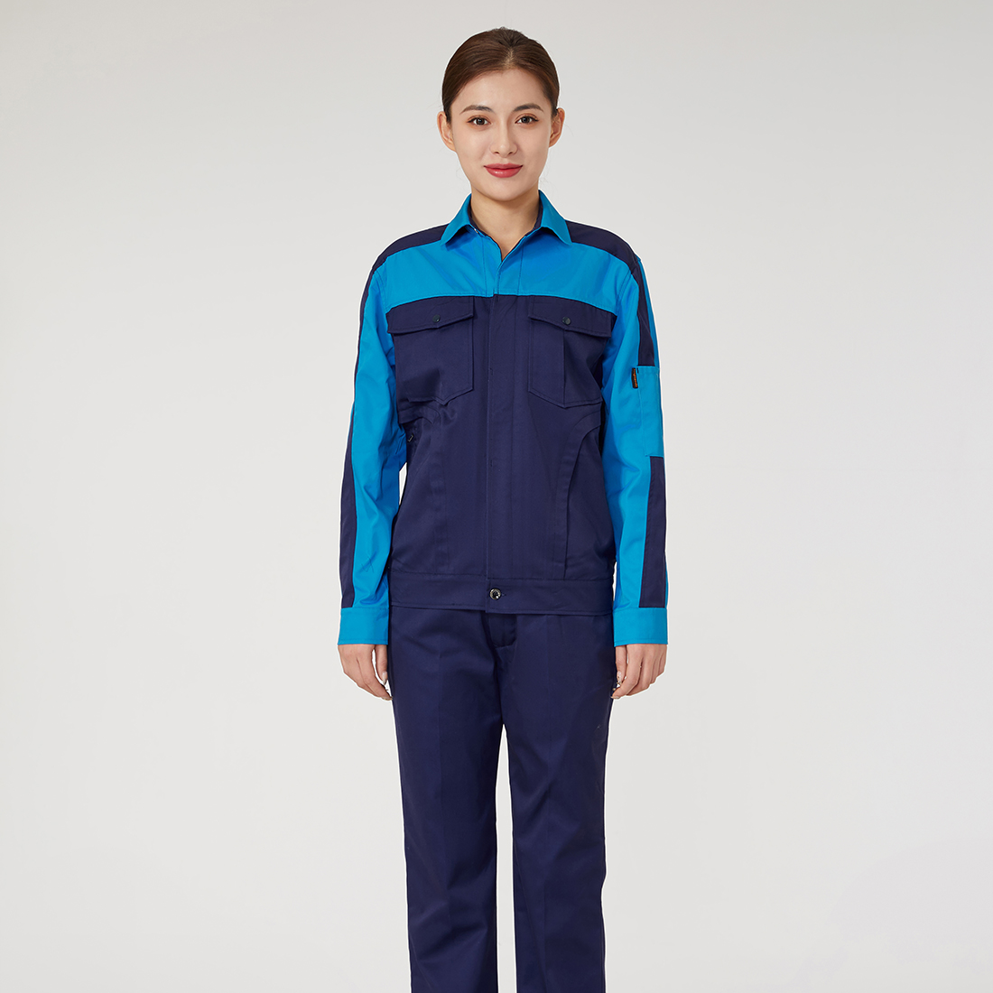 苏州鹰诺服装:湖蓝拼浅灰工作服AC20-2