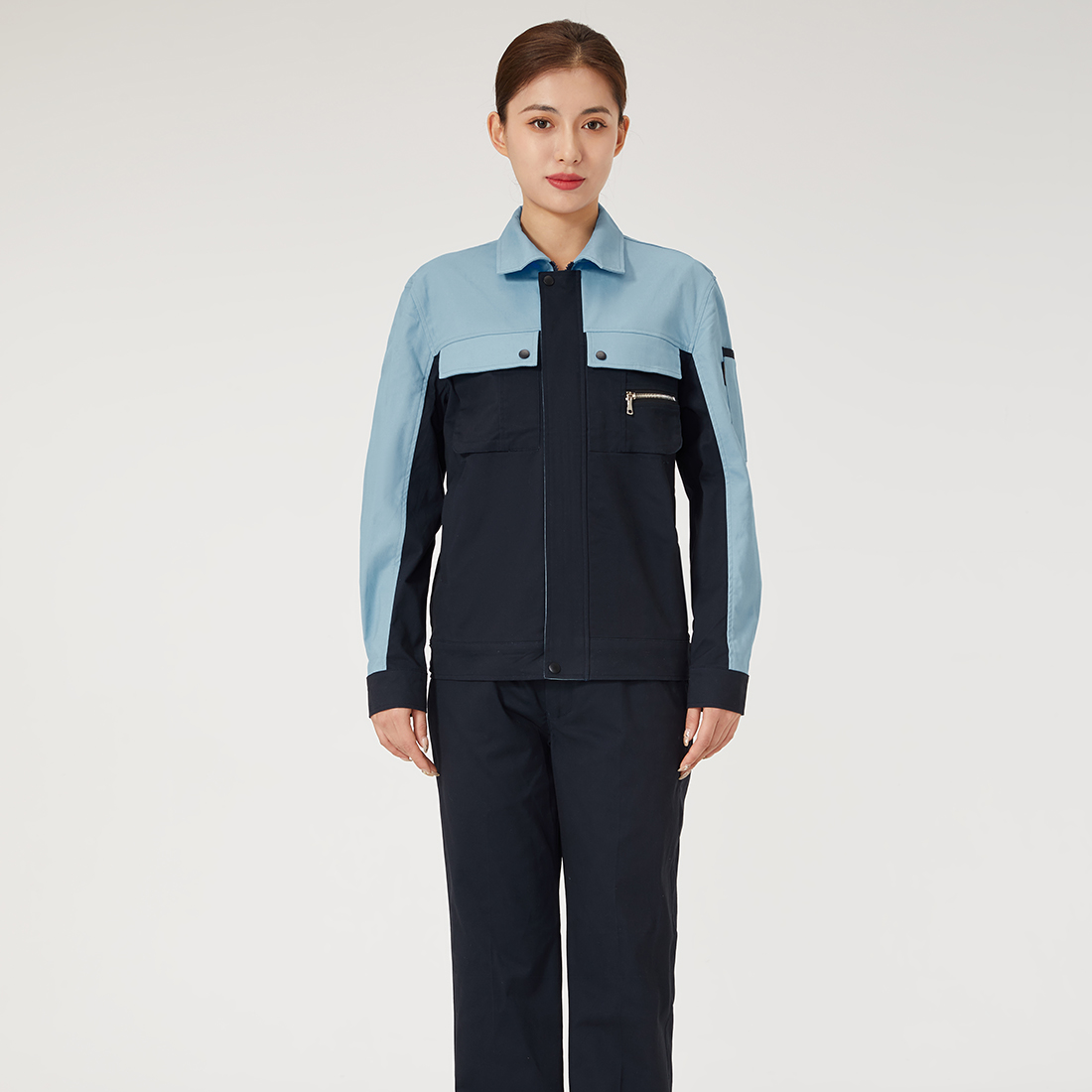 苏州鹰诺服装:湖蓝拼浅灰工作服AC20-2