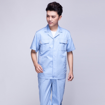 苏州鹰诺服装:清灰拼银灰全棉夏季工作服AD06-2