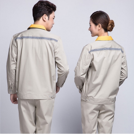 苏州鹰诺服装:黄拼驼色工作服AC17-4