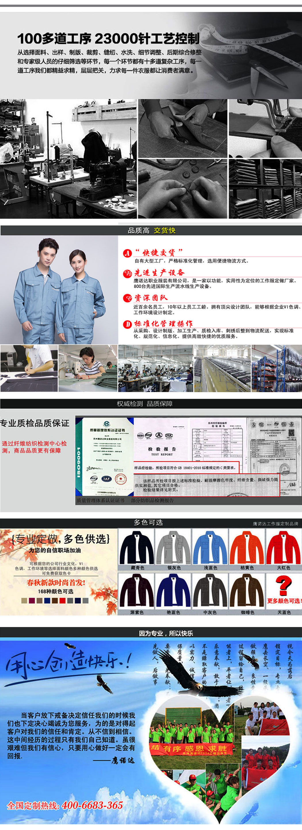 苏州鹰诺服装:藏青涤棉纱卡工衣AC109