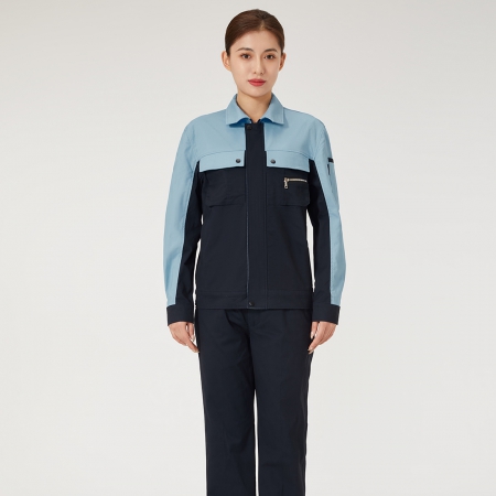 苏州鹰诺服装:深蓝拼浅灰色工作服AC2205-3