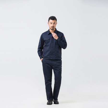 苏州鹰诺服装:深蓝涤棉纱卡哈尔滨工作服AC070-JZ