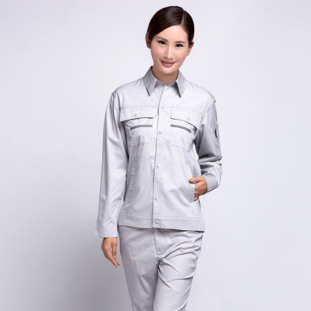 苏州鹰诺服装:浅灰配深灰涤棉纱卡建筑工作服AC071-JZ