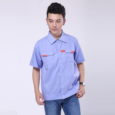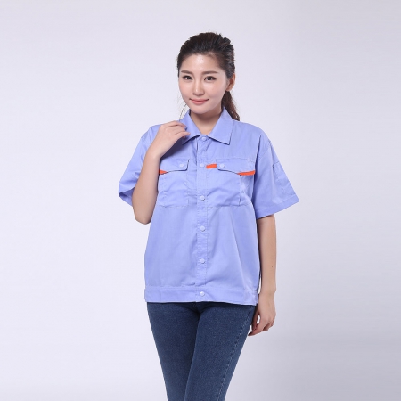 苏州鹰诺服装:深银灰拼橘黄短袖工作服AD056-DX