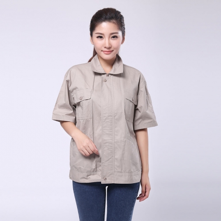 苏州鹰诺服装:驼色短袖工作服AD109-DX