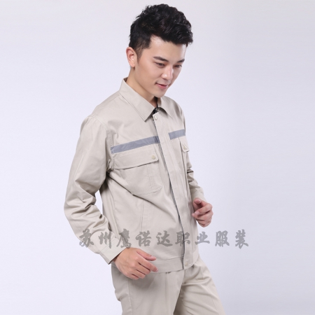 苏州鹰诺服装:米色拼藏青CVC纱卡石油化工业工作服AC112-SY