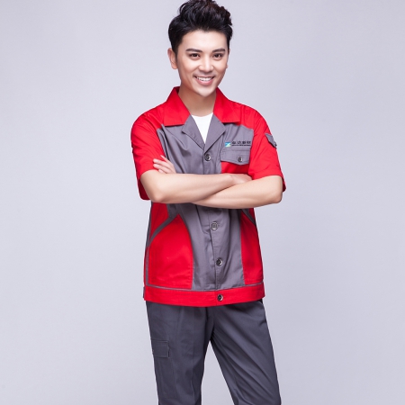 苏州鹰诺服装:银灰拼红色夏季工作服AD064-XJ