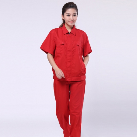 苏州鹰诺服装:大红夏季工作服AD083-XJ