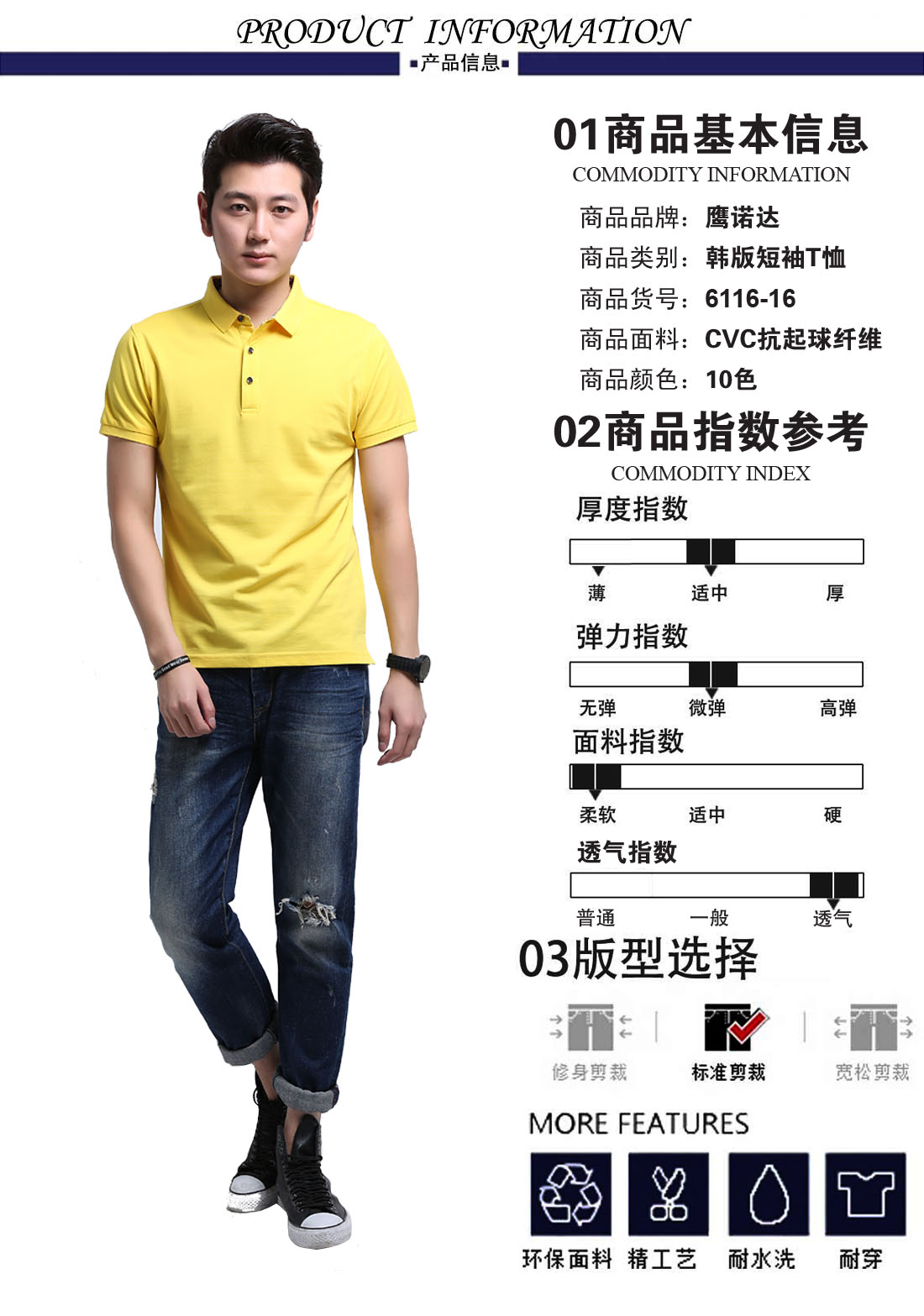 黄色CVC抗起球纤维t恤衫工作服ID6116-16