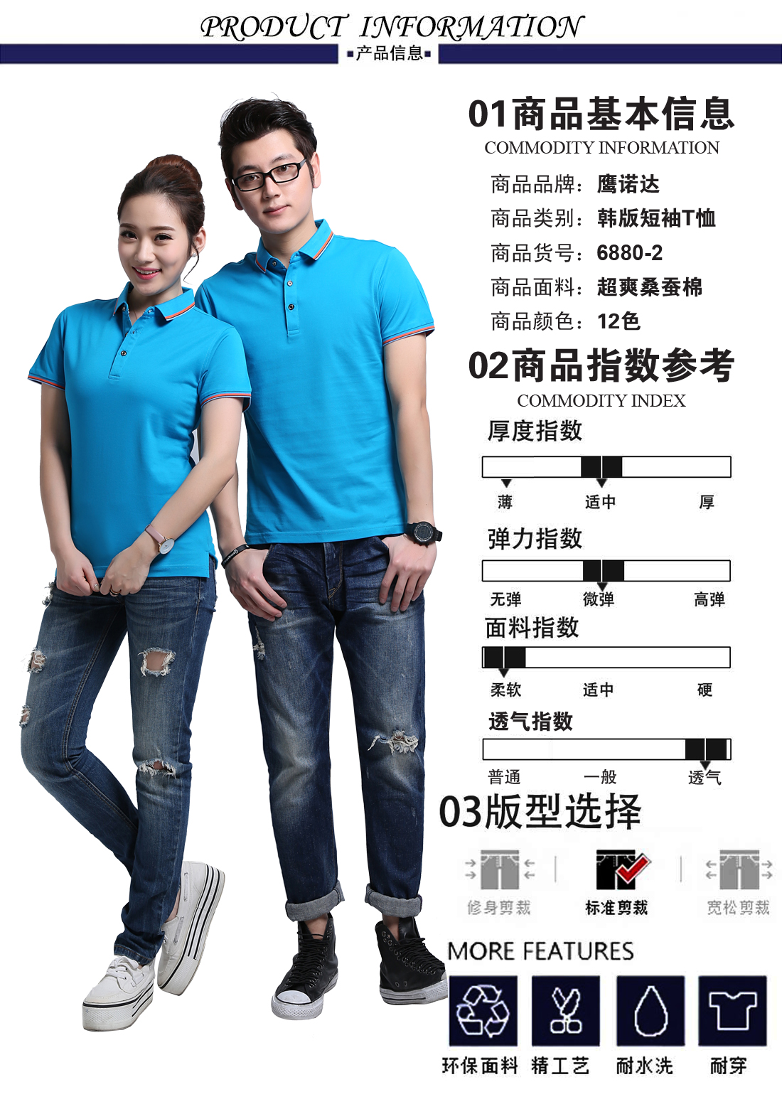 彩兰提花翻领超爽蚕丝棉T恤衫ID6880-2