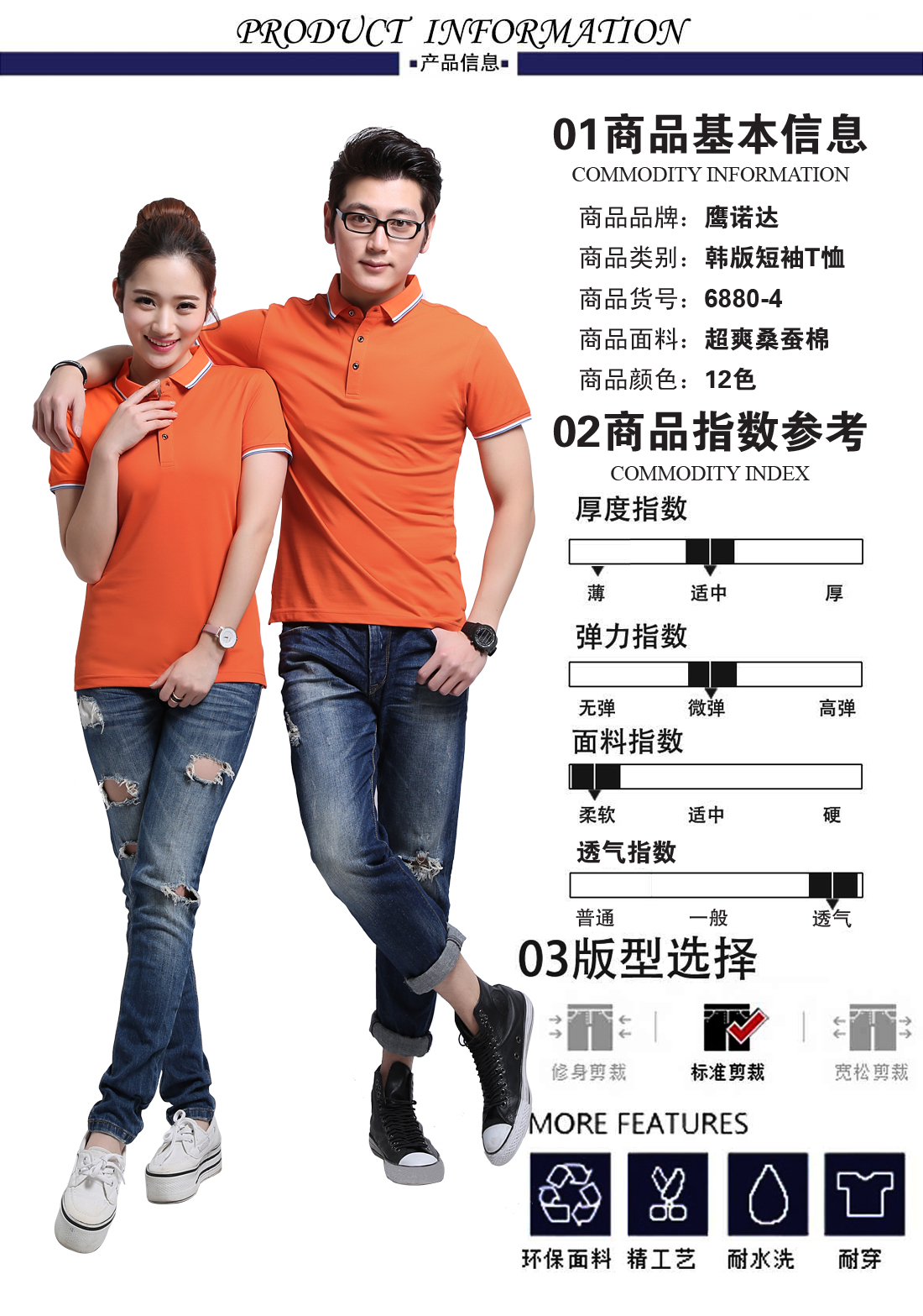桔色提花翻领超爽蚕丝棉T恤衫ID6880-4