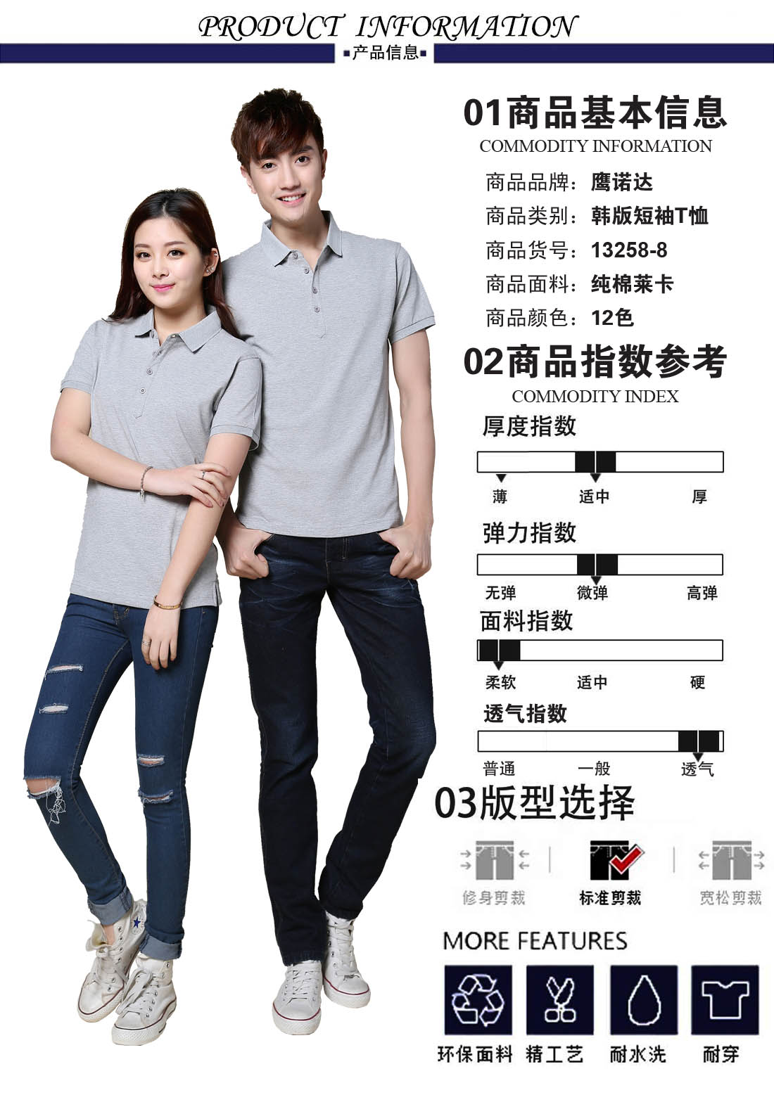 花灰翻领纯棉莱卡T恤衫ID13258-8