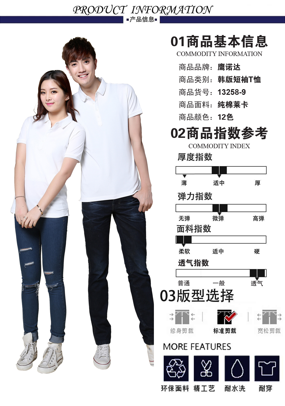 白色翻领纯棉莱卡Polo衫ID13258-9