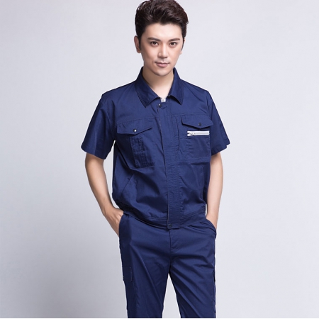 苏州鹰诺服装:深蓝配桔红春秋工作服AC069