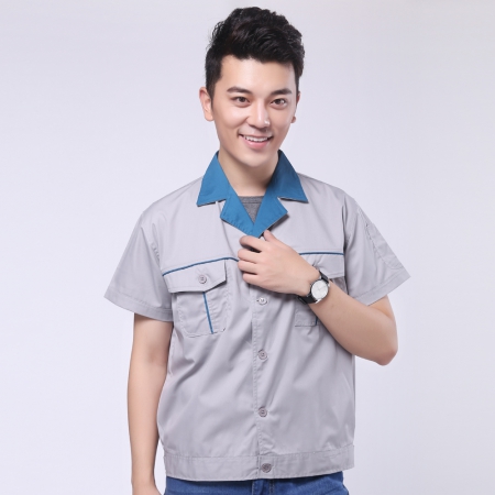 湖蓝拼浅灰工作服AC20-2