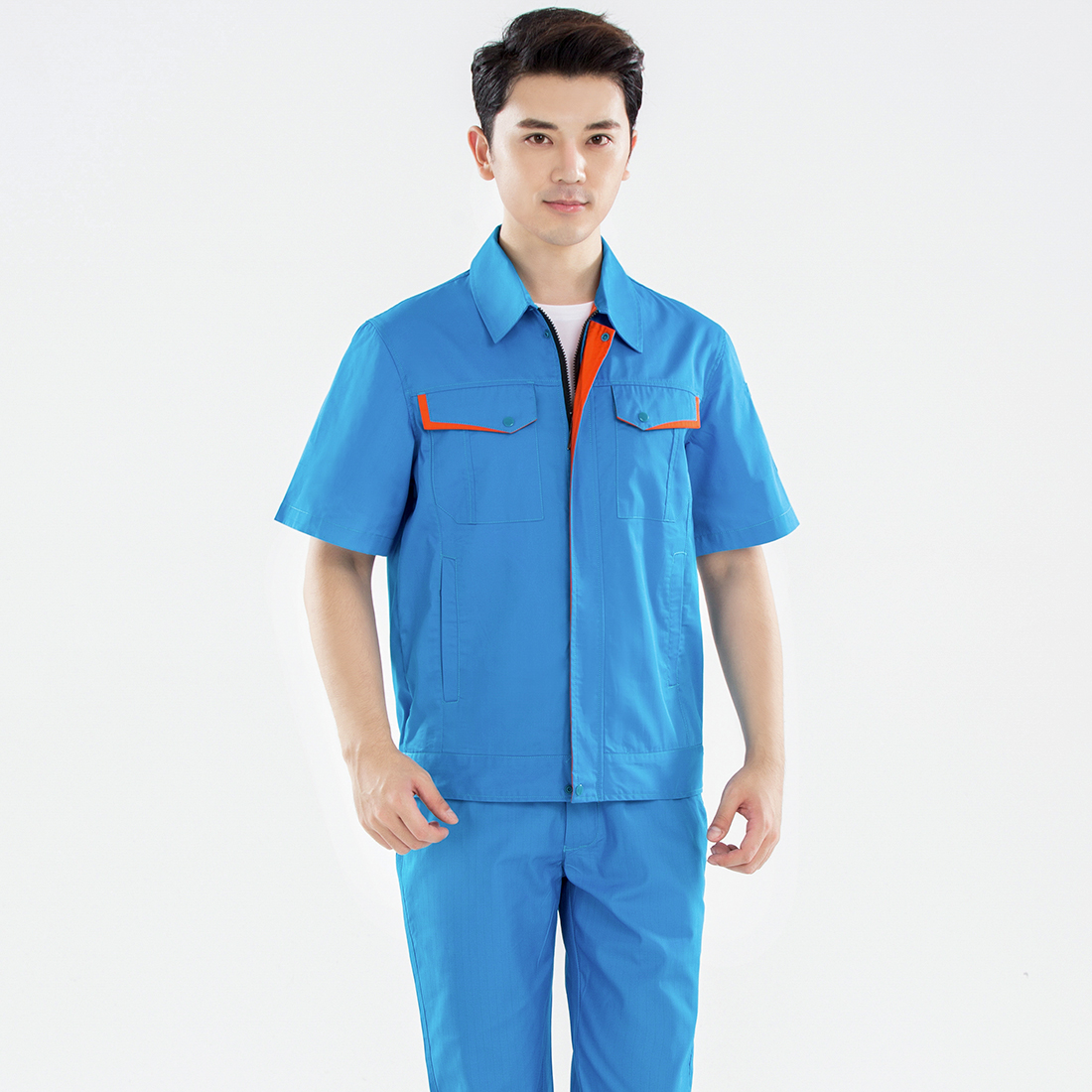 蓝色拼橙色夏季工作服AD13-4