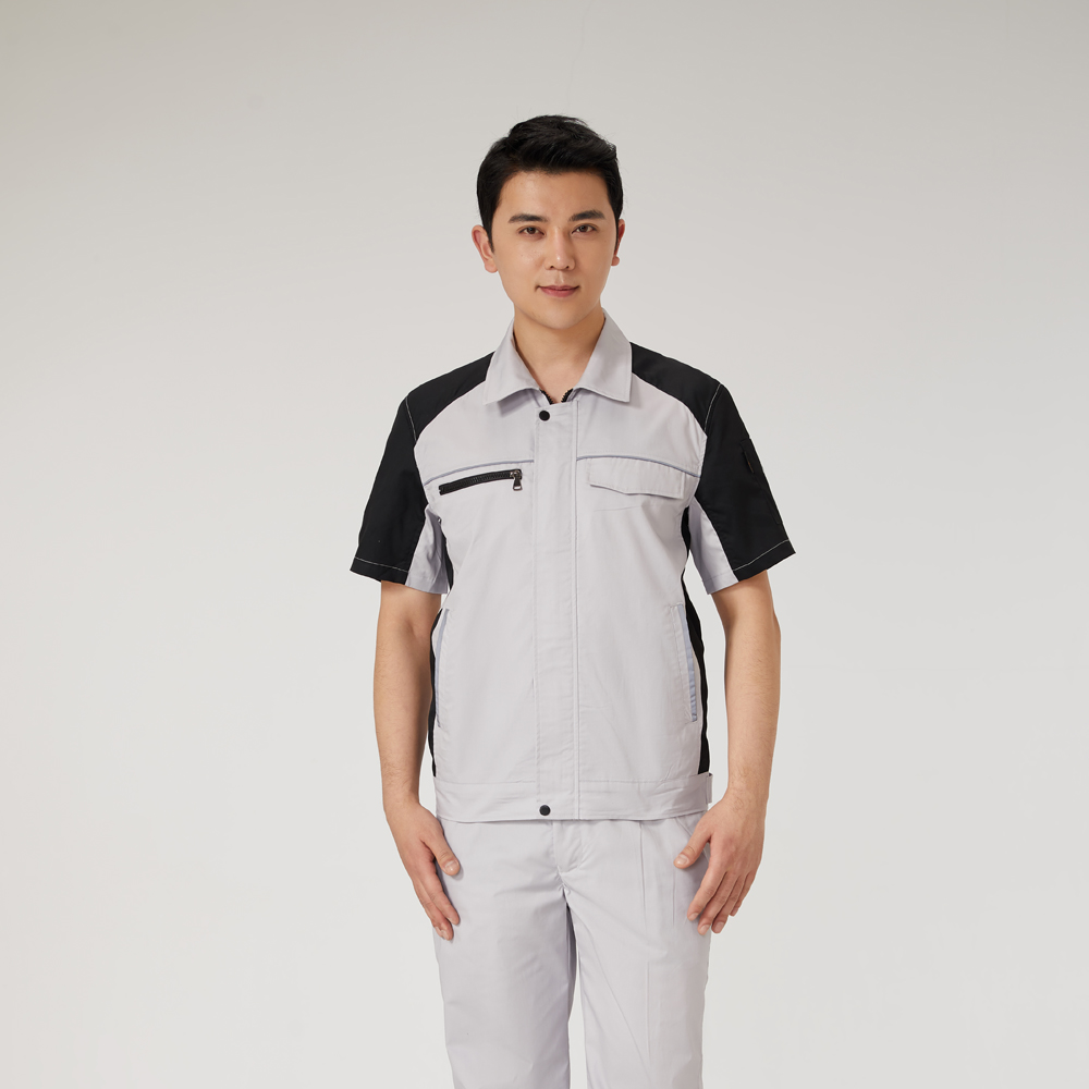 苏州鹰诺服装:灰色拼藏青夏季工作服AD089